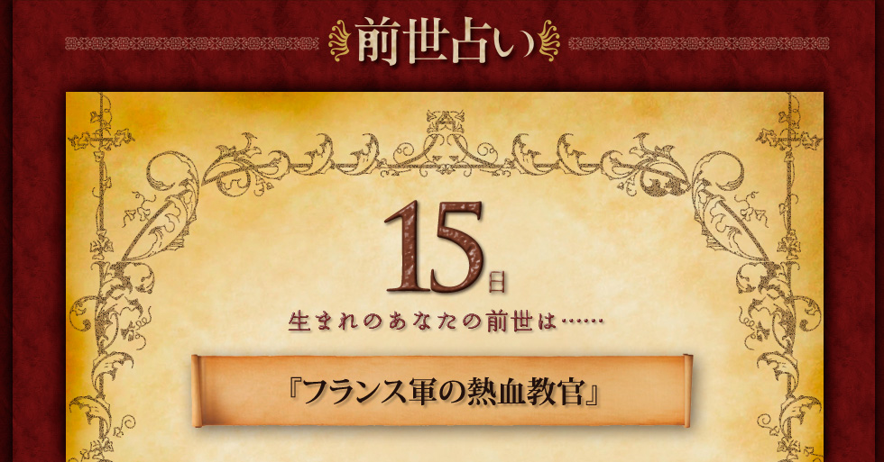 あなたの前世は、栄華を極めた植民地時代のフランス国軍で、入隊して来た
