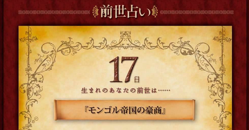 あなたの前世は、ユーラシア大陸全土に渡る広大な領土を治めた