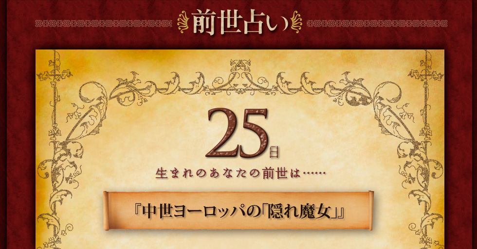 あなたの前世は、表向きは中世ヨーロッパで
