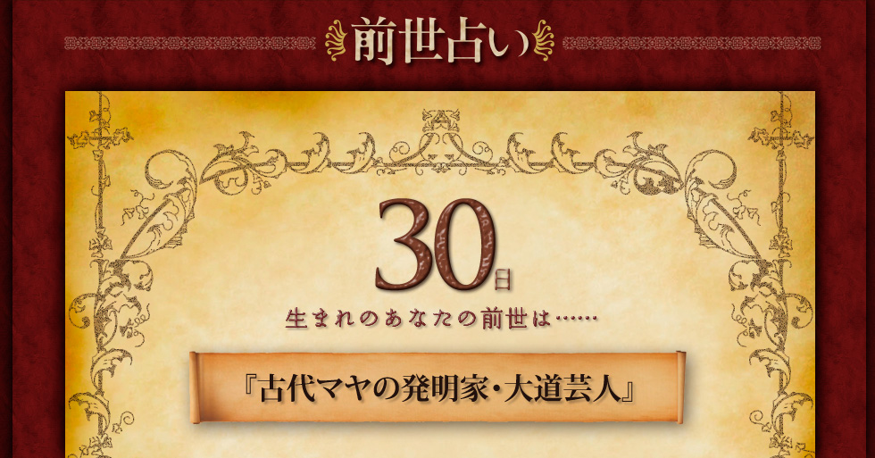 あなたの前世は、隆盛を極めた古代マヤ文明において、人気を博した大道芸人。